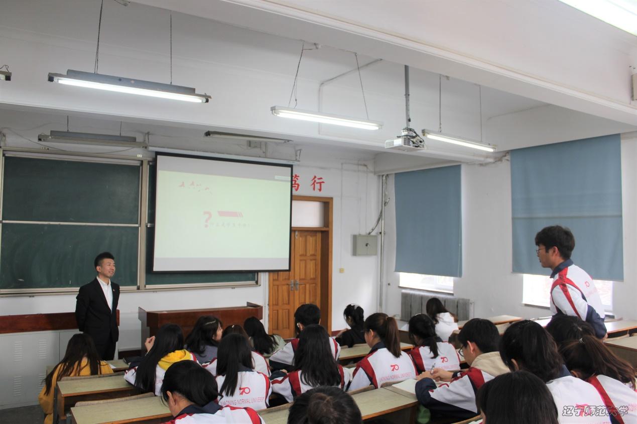 接着,车泉洋老师向大家提出“什么是学生干部”、“为什么要做学生干部”和“怎么做学生干部”三个问题,同学们积极踊跃回答,纷纷表达了自己的想法。车老师表示:学生干部首先是学生,其次才是干部。不但要践行学生的本份,更要履行干部的使命,为学校的繁荣和发展做出自己的贡献。