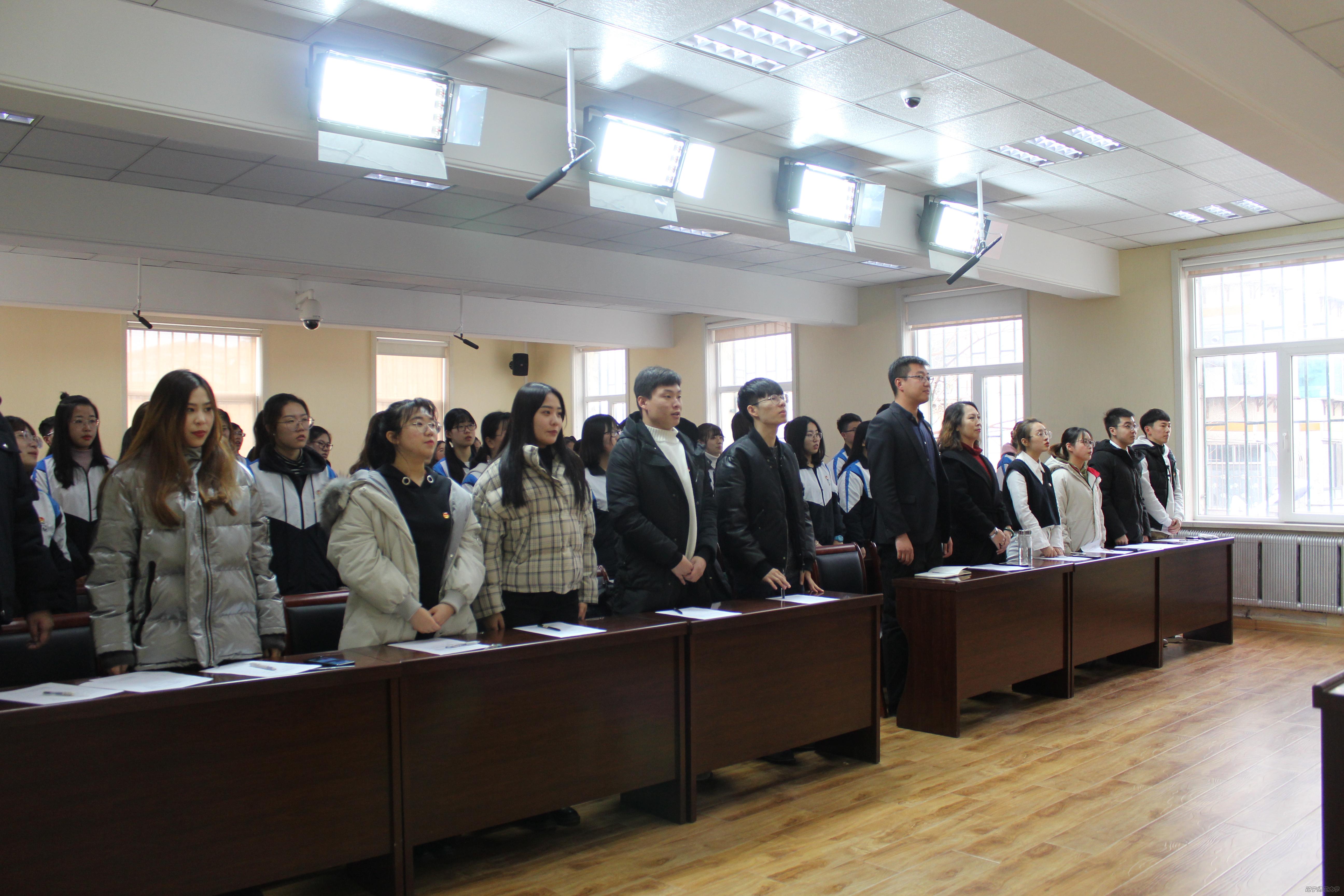 为进一步把学习习近平总书记系列重要讲话精神切实抓紧抓好,使总书记的讲话精神成为青年一代健康成长的思想和行动自觉,按照校团委关于辽宁师范大学团校2018-2019学年的工作要求和《关于加强和改进我校团课工作的通知》的具体要求, 2018年12月5日13:00,欧冠直播app 于管理楼226教室召开辽宁师范大学政府欧冠直播 团校2018-2019学年初级班开班典礼暨第一讲。出席本次典礼的有政府欧冠直播 党委书记刘淑俊老师、团委顾洪涛老师、团校高级班成员代表以及欧冠直播app 2018-2019学年初级班全体学员,本次开班典礼由欧冠直播app 学生团委学生副书记雷芸伊主持。